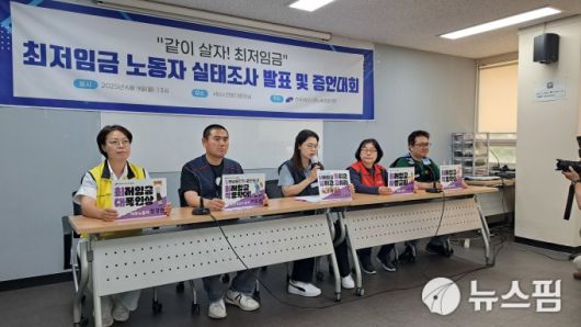 이 국장은 "서비스연맹은 학교 비정규직, 마트(유통산업), 콜센터, 요양보호사 등 여성 노동자가 많은 직군"이라며 "최저임금 노동시장은 중장년 여성의 생계형 일자리에 기인한다"고 덧붙였다.