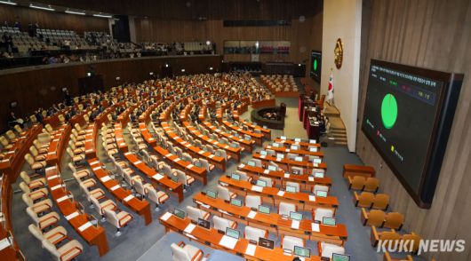 5일 서울 여의도 국회 본회의장에서 '김건희와 명태균, 건진법사 관련 국정농단 및 불법 선거 개입 사건 등 진상규명을 위한 특별검사 임명 등에 관한 법률안'(김건희 특별법)이 통과되고 있다. 유희태 기자 |