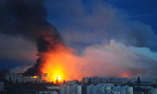 러시아군이 9일(현지시간) 우크라이나 내륙 전역 공습을 재개해 우크라이나 서부 접경국인 폴란드가 자국 영공에 공군 전투기를 출격시켰다고 외신이 보도했다. 사진은 지난 7일 우크라이나 하르키우의 한 주거 지역에서 러시아 미사일 공습으로 불길과 연기가 솟아오르는 모습. AP통신 제공 |