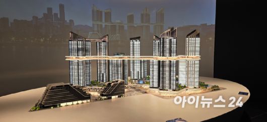 HDC현대산업개발이 용산정비창 전면1구역에 제안한 단지 모형도. [사진=이수현 기자] |