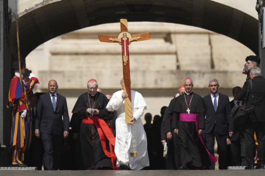 가톨릭 희년 맞아 ‘거룩한 문’ 통과 의식 9일(현지 시간) 레오 14세 교황이 가톨릭 ‘희년’(25년마다 돌아오는 은총의 해)을 맞아 바티칸 성베드로 대성당의 ‘거룩한 문’을 통과하는 의식을 거행했다. 전일 즉위 한 달을 맞은 그는 ‘정치적 민족주의’와 ‘배타주의’의 확산을 경고했다. 바티칸=AP 뉴시스 |