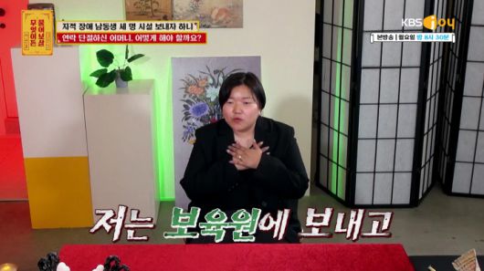 [스포츠조선 이유나 기자]6월 9일 방송된 KBS Joy '무엇이든 물어보살' 319회에는 지적장애를 가진 세 명의 남동생을 시설에 보내자고 제안한 뒤 어머니와 연락이 끊겼다는 사연이 공개됐다.