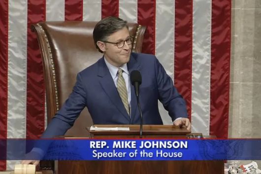 마이크 존슨 미국 하원 의장이 지난달 22일(현지시간) 워싱턴 미국 의회의사당에서 도널드 트럼프 미국 행정부의 대규모 세금 감면 법안을 통과시킨 후 밝게 웃고 있다. AP연합뉴스 |
