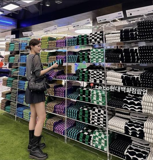공개된 사진 속 임수향은 컬러풀한 타월이 진열된 매장 한가운데서 단숨에 시선을 사로잡았다.