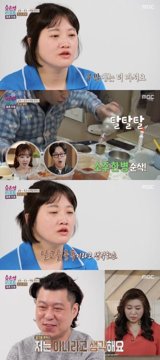 남편은 알코올 중독에 대해 어떻게 생각하냐는 질문에 “이게 줄인 것이다. 도수를 높이고 양을 줄였다. 술을 많이 먹긴 하지만 중독까진 아니다. 남들보다 잘 먹을 뿐이지. 건강은 따로 문제없다”라고 당당하게 답했다.