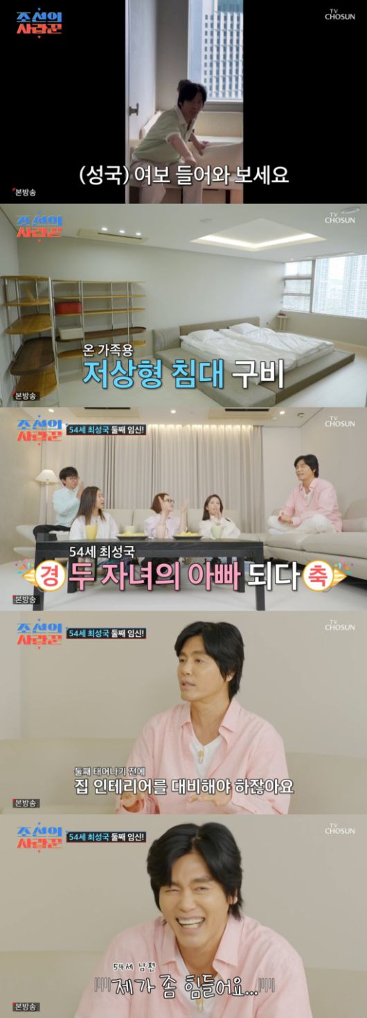9일 방송된 TV조선 '조선의 사랑꾼'에서는 최성국이 집안 인테리어를 새롭게 하게 된 계기를 밝히는 과정에서 둘째 임신 사실을 알린 장면이 전파를 탔다.