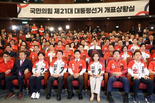 지난 3일, 김용태 국민의힘 비상대책위원장, 안철수 상임공동선대위원장 등 지도부 인사들이 서울 여의도 국회에 마련된 대선 개표 상황실서 지상파 3사 출구조사 결과를 바라보며 침통한 표정 짓고 있다. ⓒ뉴시스 |
