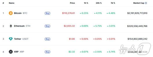 같은 시각 비트코인도 24시간 전보다 4.11% 급등한 11만276달러를 기록하고 있다. 비트코인이 11만 달러를 재돌파한 것은 5월 28일 이후 처음이다.
