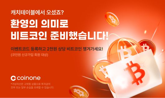 [헤럴드경제=신동윤 기자] 코인원이 식당 예약 플랫폼 캐치테이블과 함께 비트코인(BTC) 100% 당첨 혜택의 신규 가입 이벤트를 진행한다고 10일 밝혔다.