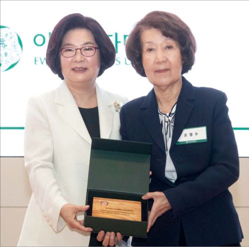 이화여대는 매년 창립기념일에 누적 후원 금액에 따라 감사패를 증정하고 있다. 올해 한세예스24문화재단은 누적 후원 금액이 5000만원에 도달해 ‘섬김 감사패’ 수여 대상으로 선정됐다. 이화여대 창립 139주년 기념 오찬 행사에서 진행된 감사패 수여식은 이향숙 이화여대 총장, 안선희 교목실장, 최윤정 대외협력처장, 조영수 한세예스24문화재단 명예 이사장 등이 참석한 가운데 진행됐다.