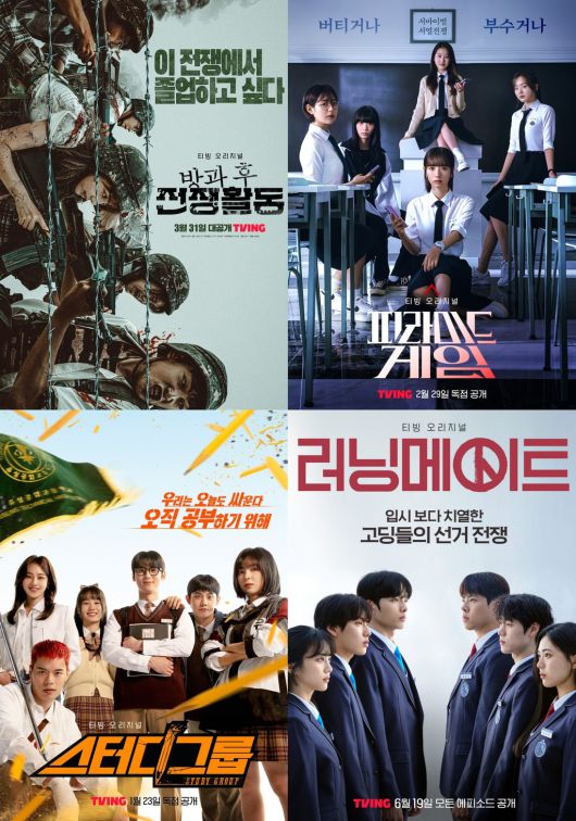 그동안 티빙은 ‘방과 후 전쟁활동’, ‘피라미드 게임’, ‘스터디그룹’ 등 기존 학원물의 틀을 깨는 파격적이고 독창적인 세계관, 색다른 소재의 학원물을 끊임없이 선보이며 큰 반향을 일으켰다.