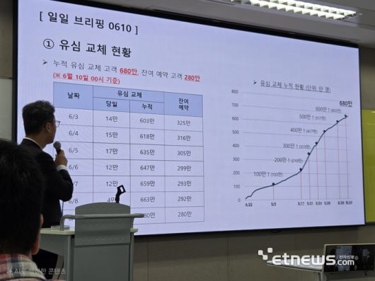 김희섭 SK텔레콤 PR센터장은 10일 열린 사이버 침해사고 관련 브리핑에서 “14일까지 유심 190만개가 추가 입고될 예정”이라며 “이달 16일에는 모든 예약 고객에게 유심 교체 일정을 문자로 안내할 수 있을 것”이라고 말했다.