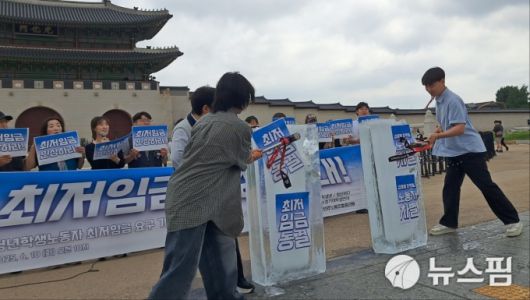 전국민주노동조합총연맹(민주노총), 진보대학생넷 등 청년 대학생 단체는 10일 서울 광화문 월대 앞에서 기자회견을 열고 "지역과 업종, 세대 구분 없이 최저임금을 보장해야 한다"고 밝혔다.