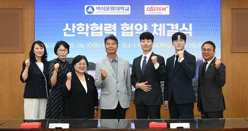(천안=연합뉴스) 유의주 기자 = 백석문화대는 10일 치과 의료기기 기업 오스템임플란트㈜와 산학협력 협약을 했다.