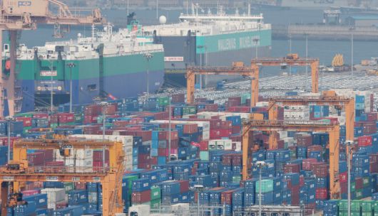 경기 평택시 포승읍 평택항 수출 야적장에 컨테이너들이 쌓여있다. 뉴스1 |