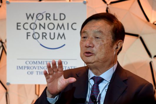 중국 최대 통신장비업체 화웨이의 런정페이 창업자 겸 최고경영자(CEO)가 지난 2020년 1월 스위스 다보스에서 열린 세계경제포럼에서 발언하고 있다.신화뉴시스 |