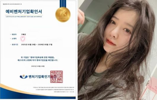 공개된 사진 중에는 구혜선이 대표자로 이름을 올린 ‘예비벤처기업확인서’가 있으며, 유효기간은 지난달 28일부터 2028년 5월 27일까지 3년간으로 기재되어 있다.