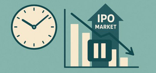 IPO 시장이 위축 조짐을 보인 6월 10일, 하락세를 나타내는 그래프와 일시 정지 기호가 IPO 시장 둔화 상황을 강조하고 있다. |