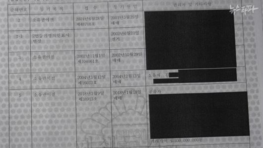 1998년 10월, 위 실장은 경기도 용인시 수지구에 땅 754㎡를 매입했다.