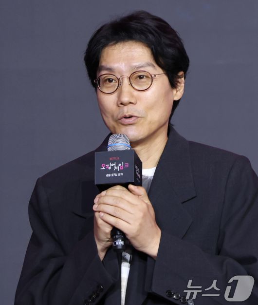 황동혁 감독이 9일 서울 용산구 서울드래곤시티에서 열린 넷플릭스 시리즈 '오징어 게임' 시즌3 제작발표회에서 인사말을 하고 있다. '오징어 게임' 시즌3은 자신만의 목적을 품고 다시 참가한 게임에서 가장 친한 친구를 잃고 만 ‘기훈’과, 정체를 숨긴 채 게임에 숨어들었던 프론트맨, 그리고 그 잔인한 게임 속에서 살아남은 참가자들의 마지막 운명을 그린 이야기다. 2025.6.9/뉴스1 ⓒ News1 권현진 기자 |