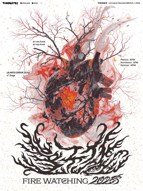 10주년을 맞은 쏜애플의 공연 ‘불구경’ 콘서트 포스터는 활활 타오르는 심장과 혈관, ‘불구경’을 한글 그대로 그려낸 강렬한 타이포그래피 디자인으로 눈길을 끌었다.