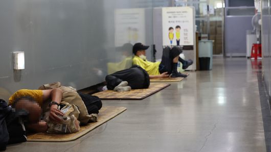 ▲ 지난 2023년 8월 1일 오후 서울역희망지원센터에서 노숙인 등이 복도에 누워 휴식하고 있는 모습