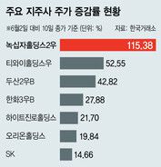 태영건설을 자회사로 둔 티와이홀딩스(52.55%)와 두산그룹 지주사인 두산의 우선주(두산2우B)(42.82%), 한화그룹 지주사의 우선주(한화3우B)(27.88%) 등도 같은 기간 두 자릿수 상승률을 보였다. 9일엔 현대자동차그룹 지주사 역할을 하는 현대모비스 주가가 하루 새 10% 급등하기도 했다.
