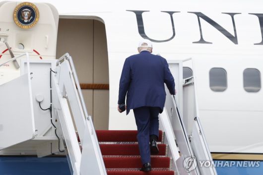 에어포스원 계단 오르는 도널드 트럼프 미국 대통령. AP 연합뉴스 |