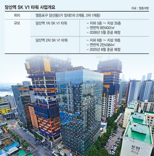 당산역 SK V1 타워 연면적은 1차와 2차를 더해 약 10만8000㎡(3만2000여평)에 이른다. 영흥개발 관계자는 "당산동 일대에서 가장 규모가 큰 복합건물이고, 1차와 2차가 지하로 연결될 예정"이라며 "고층에서는 한강을 조망하며 업무를 볼 수 있는 장소"고 전했다.