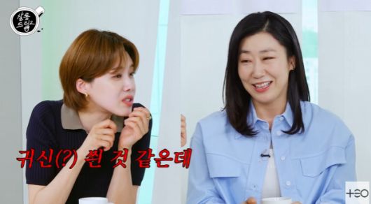 이를 보던 장도연은 "미란언니 오늘 귀신 씐것 같은데 맞냐"며 "연기 잘하는 배우보고 빙의했다 하지 않냐. 그런 느낌이다"라고 '선녀'에 완벽 몰입한 모습에 감탄했다. 안재홍은 "이렇게 애기하실때 농담하신줄 알았다. 텐션 올린다 얘기할때. 워낙 에너지가 세시고 평소에 되게 사람들이 활발하다고 오해하는데 재밌는 역할 많이 하셔서 간극 많이 느끼는것 같다"고 말했다. 라미란은 "ENTP라고 돼있는데 사회적인E인것 같다. 일 하면서 E 성향을 많이 드러내는것 같은데 본질은 I"라고 고충을 토로하기도.