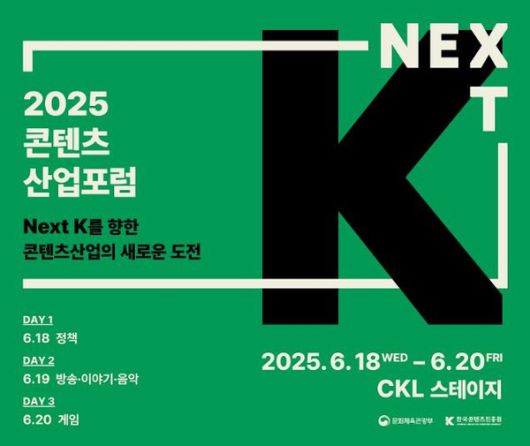 '2025 콘텐츠산업포럼'이 6월 18~20일 서울 광화문 CKL 스테이지에서 열린다.