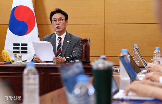“국민에게 충직한 참모장 될 것” 김민석 국무총리 후보자가 10일 서울 종로구 금융감독원 연수원에 마련된 인사청문준비단 사무실에서 기자간담회를 하고 있다. 한수빈 기자 |