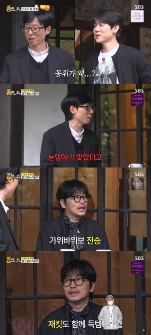 10일 방송된 SBS 예능 프로그램 '틈만나면'에서는 '틈 친구'로 홍진경, 이동휘가 출연해 '틈 주인'과 만나 이야기를 나눴다.