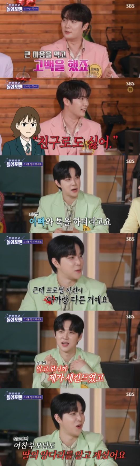 또 춘길도 고등학생 때 했던 짝사랑을 회상했다. 춘길은 "고등학생 때인데 너무 좋아했던 사람이 있었다. 너무 좋아해서 말도 못 걸었다. 큰 마음을 먹고 고백을 했는데, 그 친구가 싫다고 하더라. 그래서 '친구로 지내자'고 하니까 '친구로도 지내고 싶지 않다'고 했다"고 말해 웃픈 웃음을 유발했다.