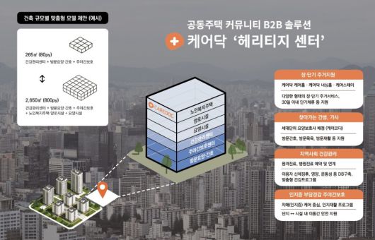 시니어 토탈 케어 기업 케어닥이 공동주택 단지 내 시니어 케어 복합 공간 개발을 위한 건설업계 B2B 솔루션 '헤리티지센터'를 출시한다고 10일 발표했다.