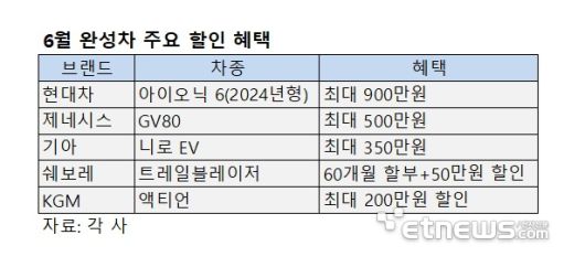 현대차는 이달 재고 소진을 위한 특별 기획전을 통해 아이오닉 6 900만원, 제네시스 GV80 500만원 등 큰 폭의 할인 혜택을 제공한다.