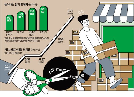 정부가 채무 조정 속도를 높이는 데는 내수 침체로 소상공인 경기가 위험 수준에 달했다고 봤기 때문이다. 금융감독원에 따르면 은행권 개인사업자 대출 연체율은 1분기 기준 0.71%로 2022년 코로나19 팬데믹 국면(0.37%)보다 오히려 악화했다. 이자 부담이 큰 2금융권 대출 역시 1분기 285조9000억원으로 1년 새 14조원 늘었다.