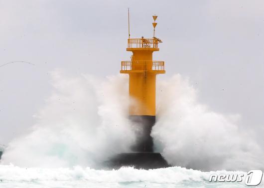 제주 서귀포시 남원읍 앞바다에 거센 파도가 치는 모습. ⓒ News1 오현지 기자 |