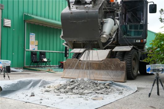 폐콘크리트침목 파쇄 장치 현장 실험 모습 |