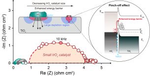 연구팀은 수전해 전극에서 고활성 촉매로 주목받는 ‘이리듐 산화물(IrOx)’이 제 성능을 발휘하지 못하는 주된 원인에 집중했다. 그 이유는 전자 전달이 비효율적으로 일어나기 때문이고 그 해결책으로 단순한 촉매 입자 크기 조절만으로도 성능을 극대화할 수 있음을 입증했다.