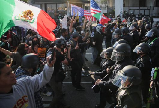 LA에서는 지난 6일부터 트럼프 정부의 불법이민자 체포에 반대하는 대규모 반정부 시위가 일어나고 있다. 시위 참가자들은 멕시코 국기를 들고 거리에 나섰다. 1846년까지 멕시코 영토였던 캘리포니아주에는 주(州) 인구의 약 30%가 멕시코 출신이다.
