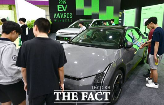 이재명 대통령은 당선 직후 2030년까지 전기차 보급률을 50%까지 끌어올리겠다고 밝혔다. 지난 4일 서울 강남구 코엑스에서 열린 'EV트렌드코리아 2025' 현장. /이새롬 기자 |
