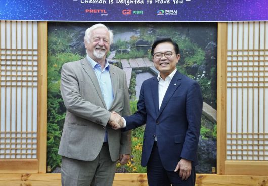 롤프 군터 프레틀(Rolf Gunther Prettl) 프레틀 그룹 회장(왼쪽)과 김석필 천안 시장 권한대행 부시장은 모빌리티, 에너지 등 천안시의 전략 산업 분야에서 협력 방안을 논의했다. |