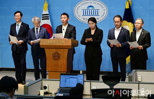 아시아투데이 이병화 기자 = 장경태·김용민·민형배·강준현·김문수 더불어민주당 의원이 11일 국회 소통관에서 검찰개혁 관련 기자회견을 열고 검찰청법 폐지법안, 공소청 신설법안 등 발의한 법안들에 대해 설명하고 있다. ⓒ "젊은 파워, 모바일 넘버원 아시아투데이"