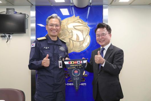 (춘천=국제뉴스) 이재호 기자 = 육동한 춘천시장은 10일 동해항에 정박 중인 해군 '춘천함'을 방문해 춘천시 대표단과 시민, 해군 관계자들이 함께하는 교류 행사를 열었다.