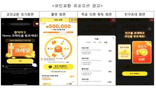 아울러 공정위는 테무가 모바일 앱을 처음 설치하는 사용자에게 15만원 상당의 할인 쿠폰을 제공한다는 내용의 홈페이지 팝업 광고를 한 점도 문제라고 봤다.