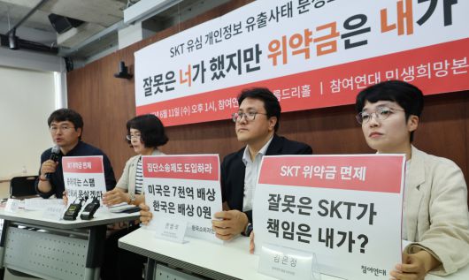 이들은 같은 날 서울시 종로구 참여연대 2층 아름드리홀에서 기자회견을 열었다. SKT 알뜰폰 이용자인 이 씨는 "오늘은 지난 4월 SKT 유심 개인정보 유출 사고가 알려진 지 50일째 되는 날"이라면서 "지난 50일은 불안과 실망으로 가득한 시간이었다"고 했다.