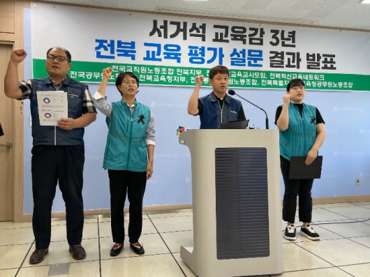 전북교육청은 이날 입장문을 내 "전교조와 몇몇 특정단체는 지속적으로 전북교육의 핵심 정책을 반대했다"며 "학력신장과 책임교육, 학생중심 미래교육을 흔들기 위한 반대자들 중심의 의도적이고 편향된 조사 결과"라고 밝혔다.