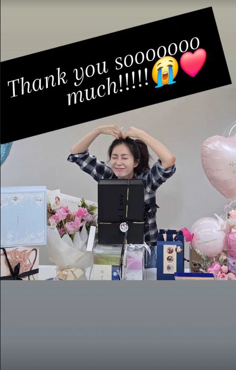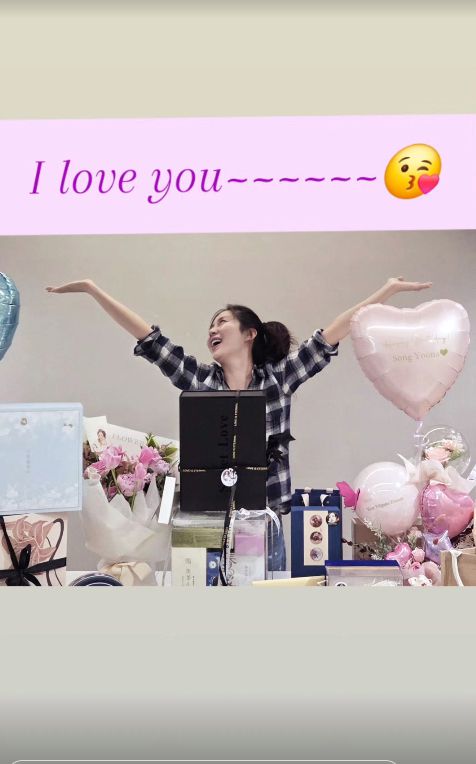 공개된 사진에는 팬과 지인들이 보낸 선물로 가득 찬 공간에서 기쁨을 만끽하는 송윤아의 모습이 담겨있다.