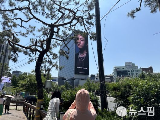 [서울=뉴스핌] 이지은 기자 = '정국 차이나'가 서울 중구 코리아나호텔 외벽에 정국의 전역을 축하하기 위한 광고를 걸었다. 이를 보기 위해 모인 태국, 인도 팬. 2025.06.11 alice09@newspim.com |